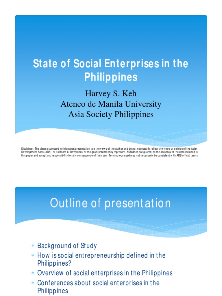 Sep 07, 2015 · in the philippines, there is ample opportunity to support social enterprises. 20th floor net square bldg. 28th st., crescent park west. Evidence from a rapid survey in the philippines | asian development bank It's not just saying, 'hey, we have a social mission as an organization, and x percent of our sales goes to nonprofit x, y, and z.'